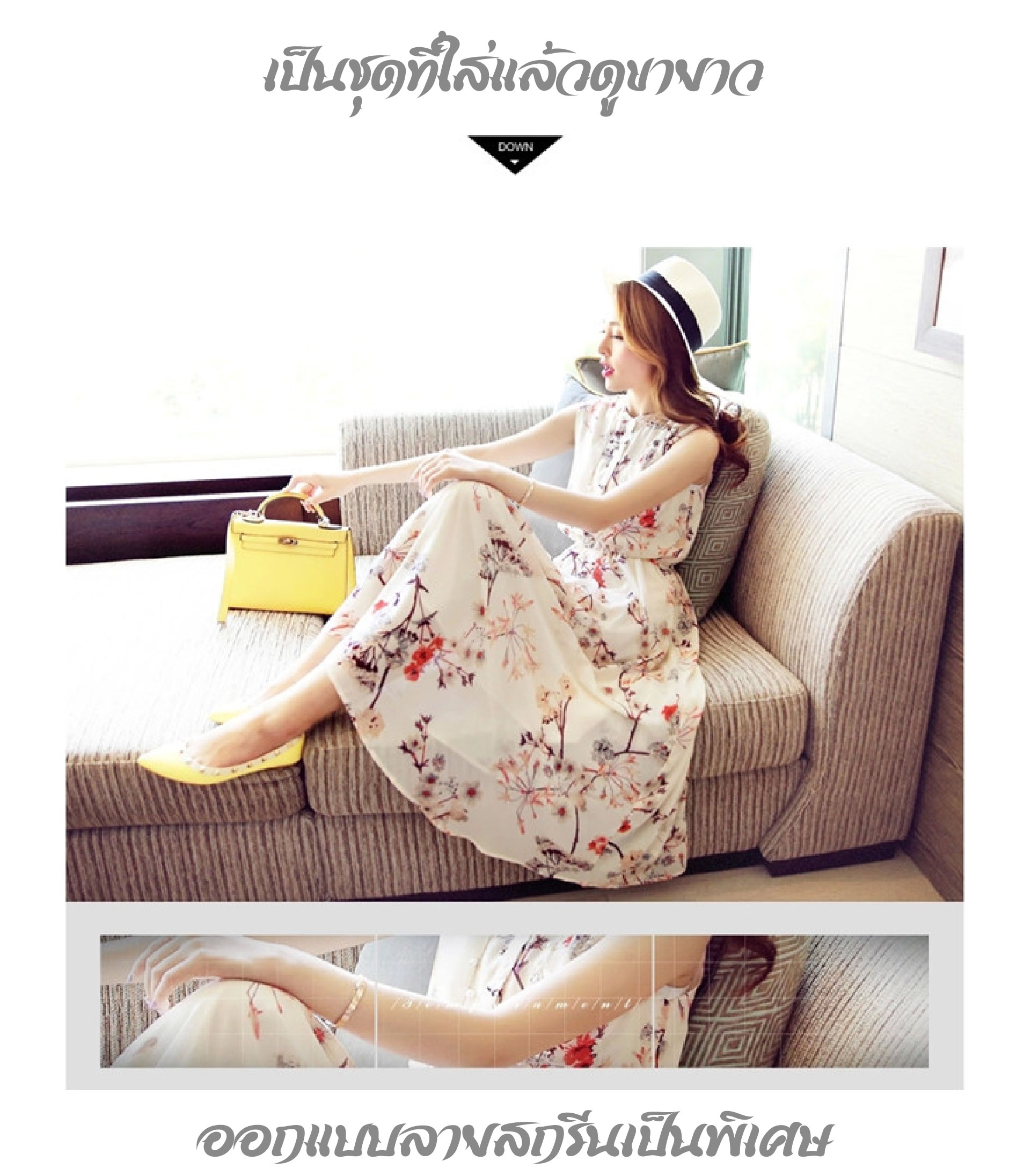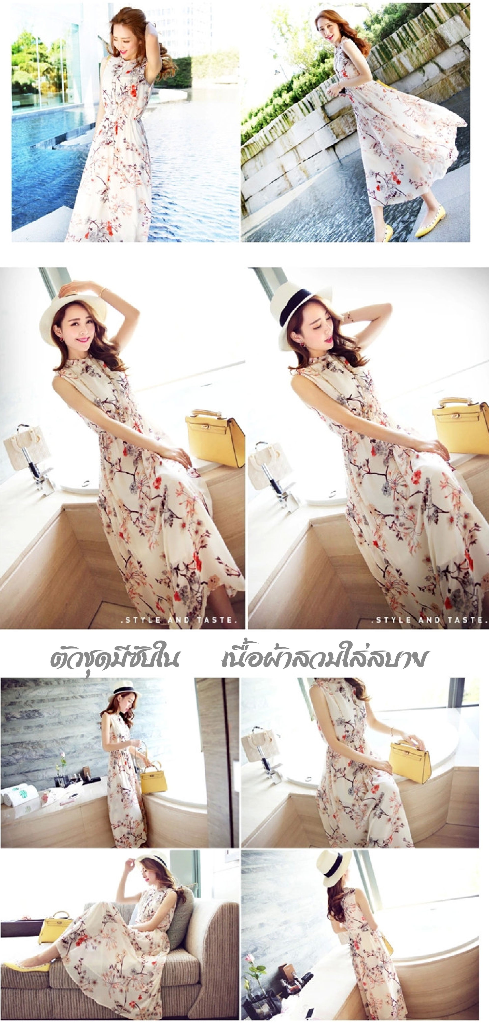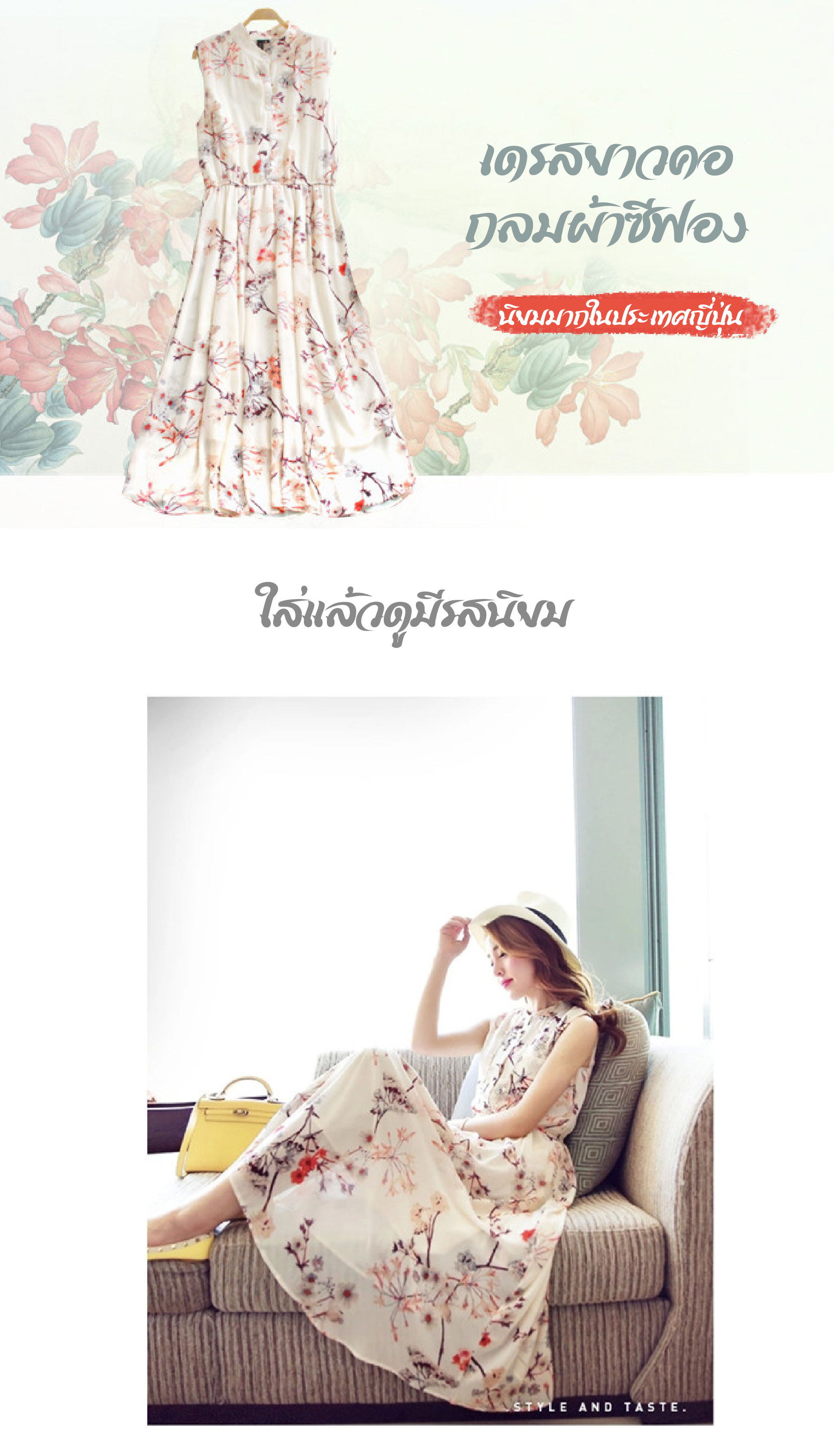 Flower Print Chiffon Dress-White Long Skirt